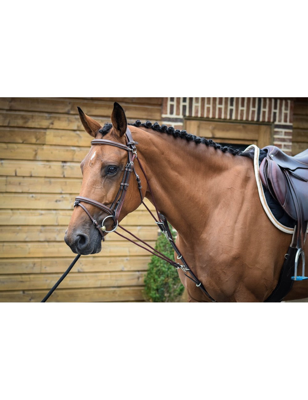 Un classico gogue Jump'In decorato con impunture a contrasto . Il gogue è un grande aiuto per il cavallo per mantenere un ottimo atteggiamento e il giusto angolo di lavoro. Può essere adattato alla taglia del cavallo ma anche al livello di allenamento e all'intensità del lavoro .